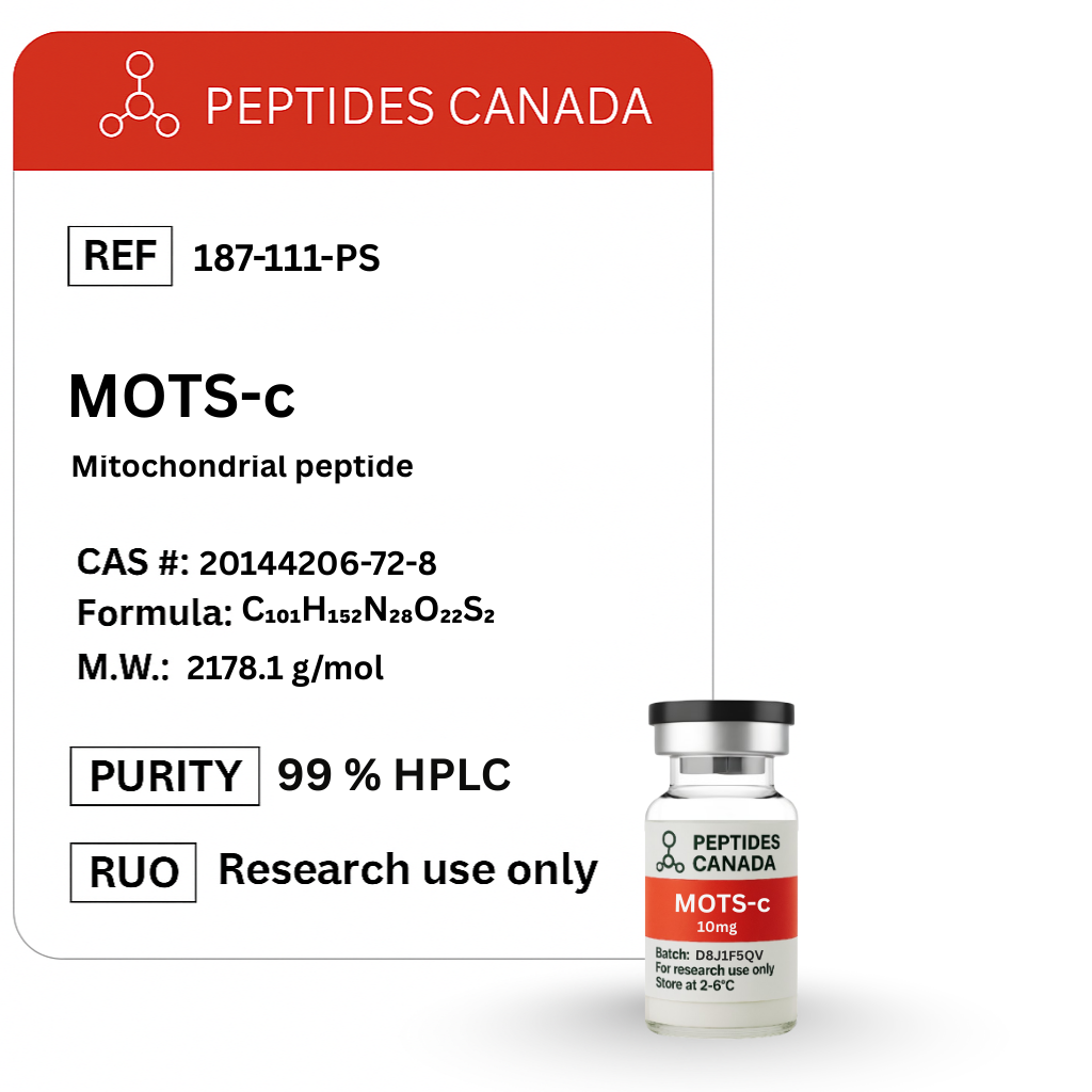 MOTS-c (mitochondrial open reading frame of the 12S rRNA type-c) represents a 16-amino acid peptide encoded by the mitochondrial genome. It is believed to contribute to metabolic regulation, enhancement of insulin sensitivity, and maintenance of mitochondrial stability, particularly under conditions of cellular stress. Studies suggest that MOTS-c functions through the AMPK signaling pathway and other related mechanisms involved in metabolic and age-associated processes.